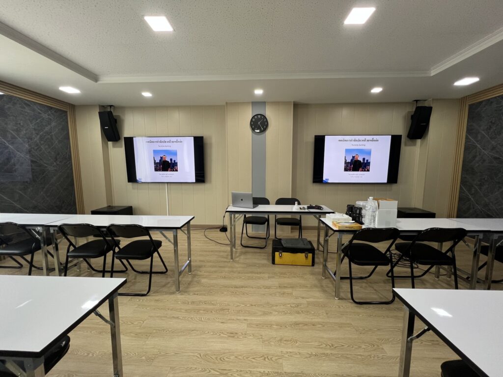 ห้องฝึกอบรมรองรับได้ 40 คน ระบบมีเดียที่ทันสมัย ภาพคมชัด ละเอียดเห็นเส้นขนปลวกลงลึกถึงดีเทล ระบบเสียงที่ดีเยี่ยม เครื่องเสียง Bose ห้องกันเสียงท้องอย่างดี ส่งผลต่อการรับรู้ของผู้เข้าอบรมได้อย่างดีเยี่ยม ที่จอดรถสะดวก มาง่ายไร้รถติด ที่ ลำลูกกาคลอง 5